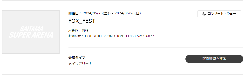 さいたまスーパーアリーナのスケジュールに書いてある
