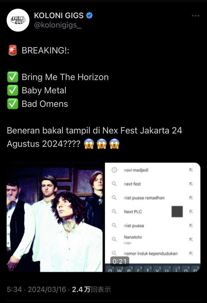 24日にネシアでネックスフェストなら翌日のサマソニバンコクも出演確定かベビメタ