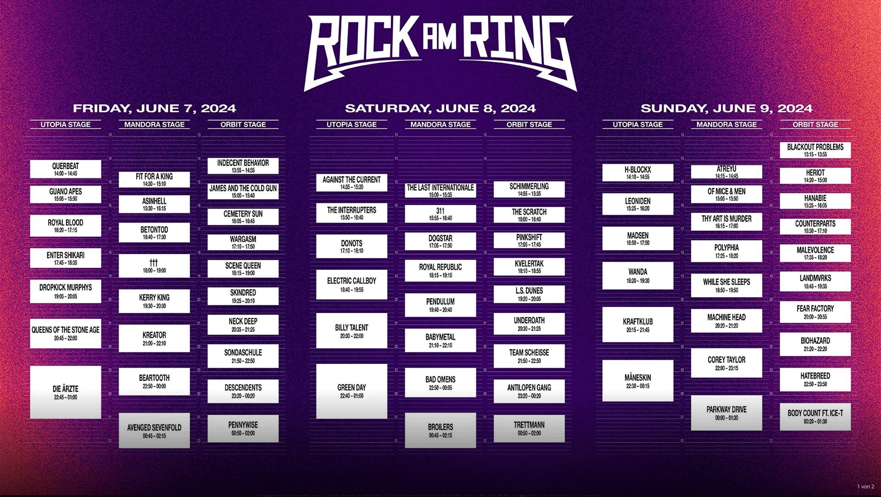 Rock am Ring のみが放送されるので、Saturday Set は午後 9 時 10 分 (GMT +2) に視聴できます。Babymetal Set も短時間オンデマンドで視聴できます。