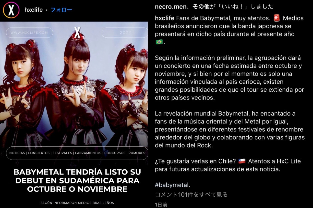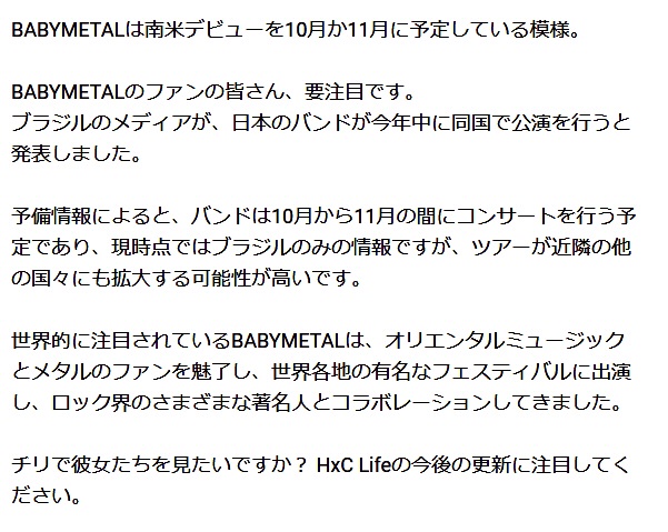 ノットフェスブラジル今週中に発表だからあわせて中南米ツアーも発表だろうねベビメタ