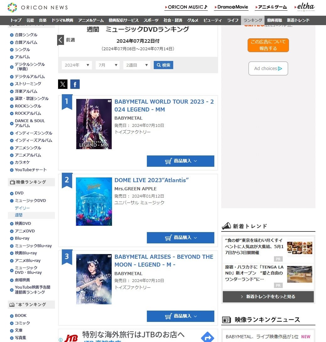 引用元:https://www.reddit.com/r/BABYMETAL/comments/1e68t9k/babymetal_at_no_1_on_oricons_weekly_dvd_chart/