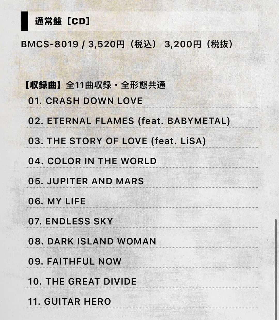 「全10曲。世界的な活動を展開するメタルダンスユニット BABYMETALがゲスト参加し、エリックとの愉快な掛け合いが『ETERNAL FLAMES』と新たなTMGサウンドを象徴するだろう」
