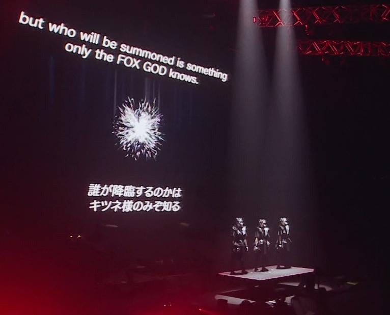 そして、3人のメタルスピリットは、アベンジャーズではなく、スゥ、モア、モモです。彼らは、モモが初めてBABYMETALのステージに登場したときのことを思い出しているだけです。(ちなみに、これは後にF.HeroがPA PA YAでラップを披露したのと同じステージです。)