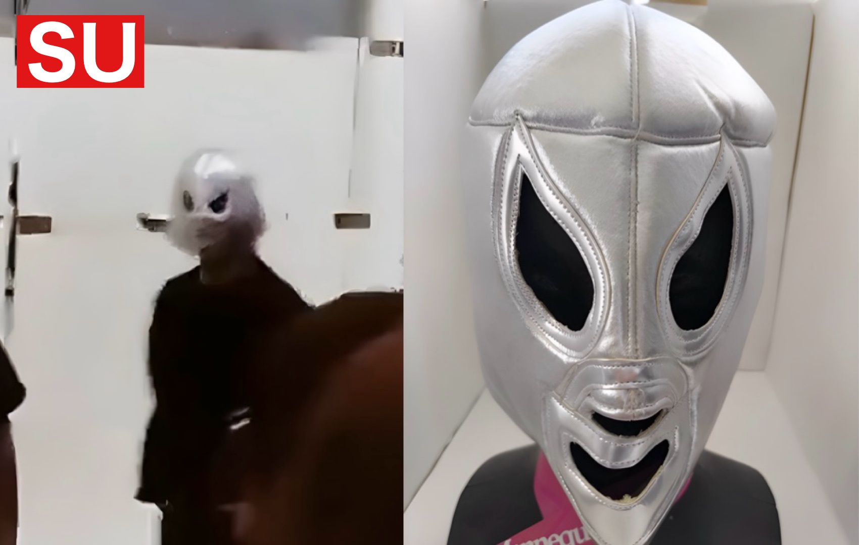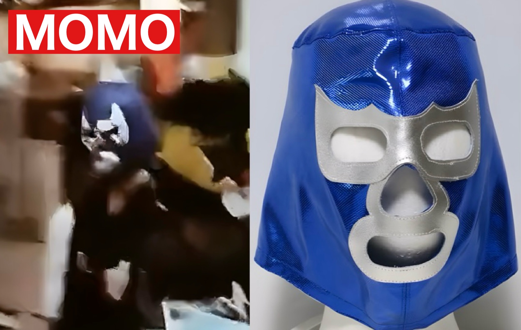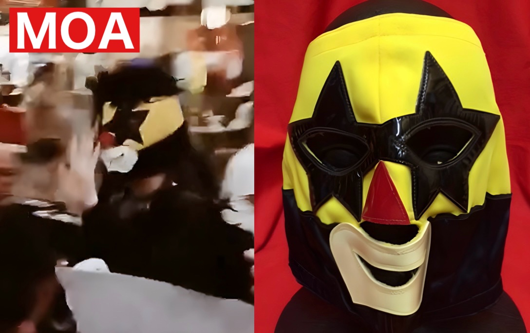 コバも、どうせ撮られるなら、プロレス風にマスク被せようとなったのか?