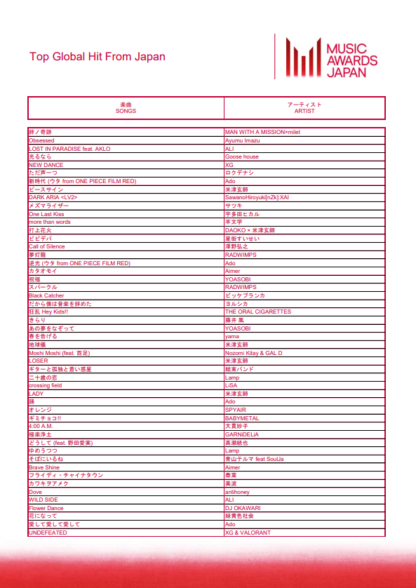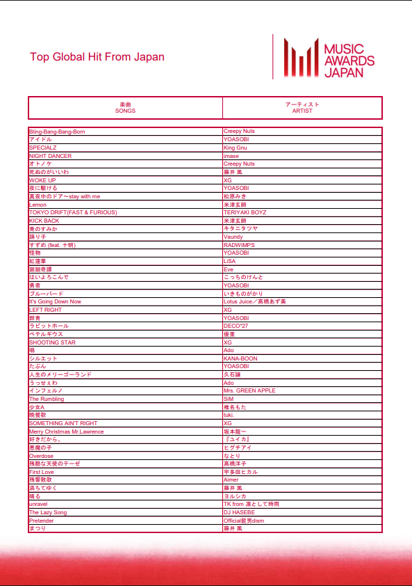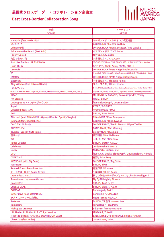 『MUSIC AWARDS JAPAN』は、音楽業界の主要5団体である日本レコード協会、日本音楽事業者協会、日本音楽制作者連盟、日本音楽出版社協会、コンサートプロモーターズ協会が垣根を越えて設立したCEIPAによる国内最大規模の国際音楽賞。5月21日、22日にロームシアター京都にて授賞式が開催される。