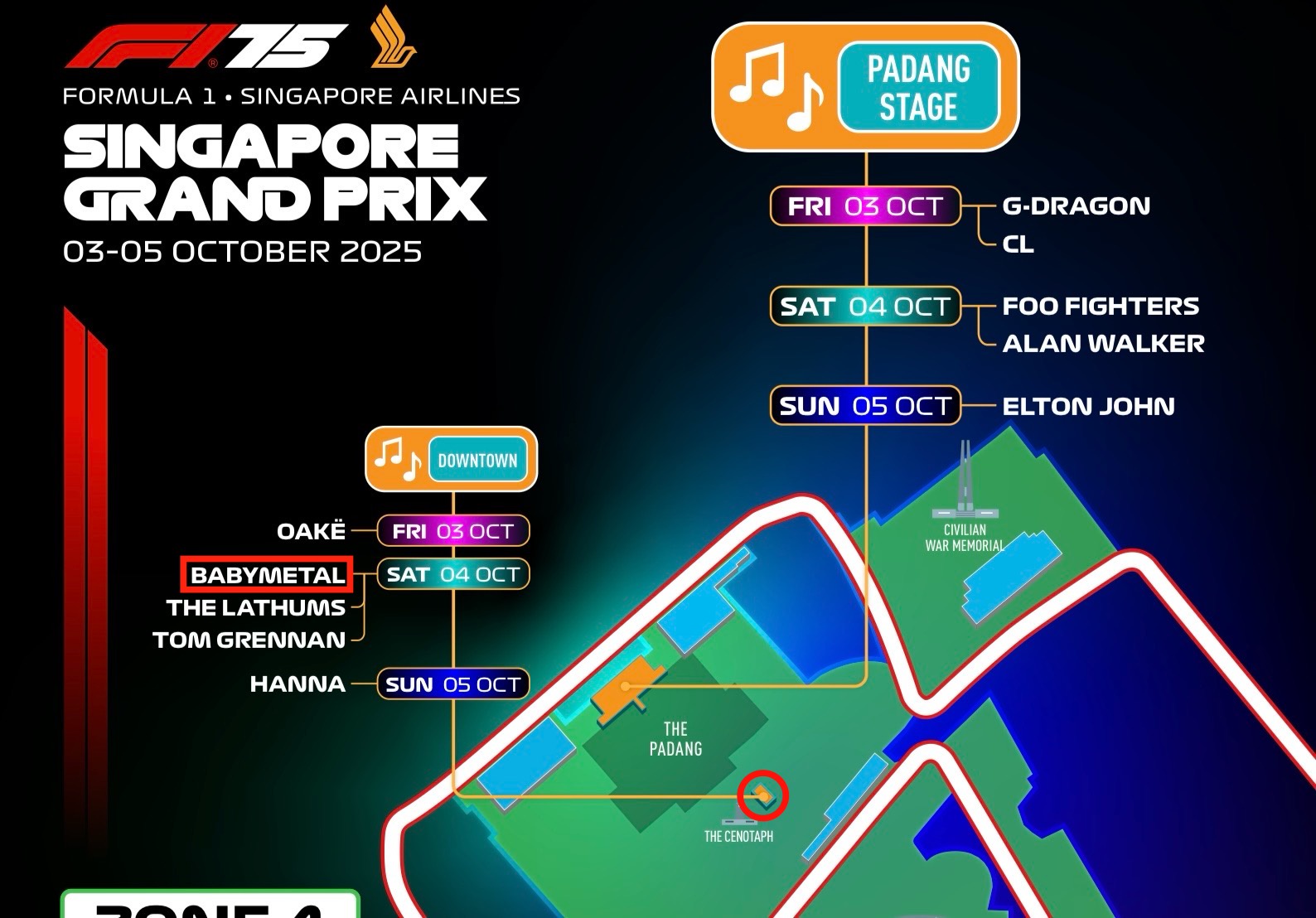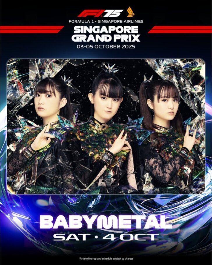 BABYMETAL will perform at “Formula 1 Singapore Airlines Singapore Grand Prix”at Marina Bay, Singapore in 4th Oct 2025🏎️💨💨💨