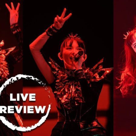 5月10日から始まったUK&EUアリーナツアーのサポートアクトとして帯同していたBambie ThugとPoppyのステージが終わり、今か今かと待ち構えるファンたちから「BABYMETALコール」が巻き起こり、ボルテージが高まってきたところで暗転となり、BABYMETAL恒例の紙芝居風のストーリームービーが始まった。 「メタルのその先へ」というメッセージと共に、4枚目の新作アルバムとなる『METAL FORTH』のジャケットデザインを模っているガラスの破片がバラバラな状態からBABYMETALのロゴを形作ると、いよいよ『BABYMETAL DEATH』で幕開けだ!