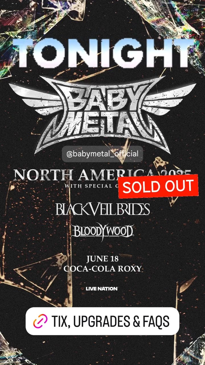⚔️ TONIGHT! ⚔️ BABYMETAL makes an epic return to our stage with Black Veil Brides and Bloodywood! 🤘 #SOLDOUT