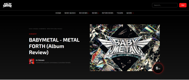 METAL FORTHは不思議なリスニング体験をもたらす。コラボレーションごとにサウンドが変化し、 BABYMETALを新たなサブジャンルへと押し上げている。メタル界で台頭する様々な国のアーティストをBABYMETALの世界に引き込んだという事実は、彼女たちの地位を物語っている。METAL FORTHは彼女たちを更なる世界征服へと導くが、他者の楽曲にボーカルゲストとして参加することで、彼女たちのアイデンティティは薄れてしまう。その結果、まるでジェットコースターのようなアルバムに仕上がっている。一度乗るのは楽しいが、その後はもっとスリルを求めてしまうだろう。
