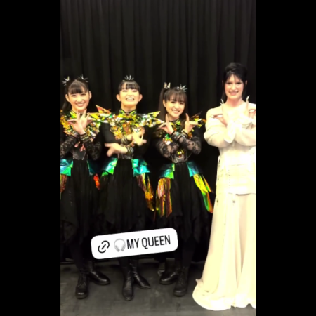 BABYMETAL(SU-METAL、MOAMETAL、MOMOMETAL)が「実はメタルが好きだとお聞きしまして」と紹介し、高市氏のメタルやハードロック好きの経歴をひもといた。