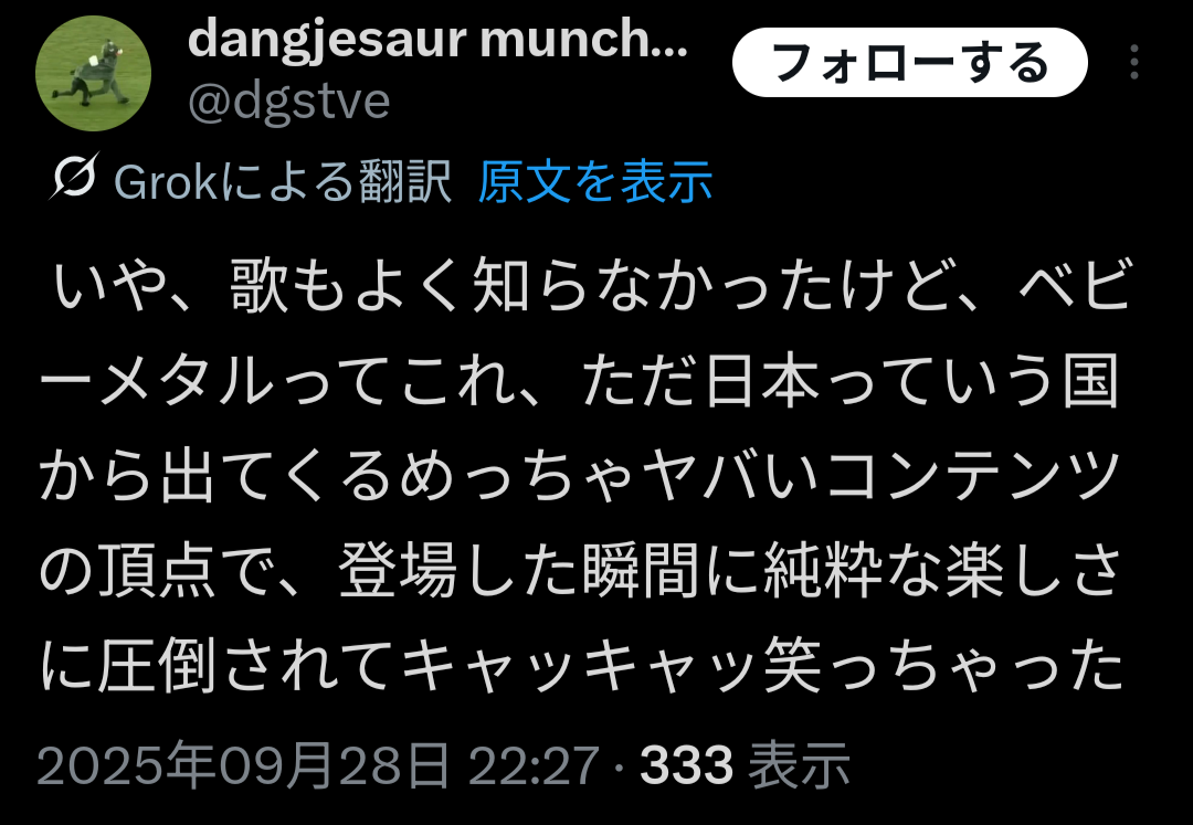 日本という国は、ベビーメタルを生み出すためにその歴史を築いてきたのでしょう、きっと。(韓国語翻訳)