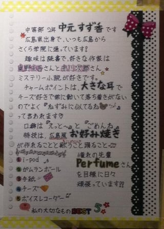 時は流れ、2011年の春。伝説によると、さくら学院はグループ初のフルアルバム『さくら学院 2010年年度:Message』の撮影に、お気に入りの私物を持参するよう求められたという。どういうわけか、すぅは表向きはヘラを2本選んだようで(2枚目の写真参照)、さくら学院ファンはそれを彼女の広島への惜しみない愛の表れだと解釈した。特に、彼女はその後2度もお好み焼きについて触れている。1度目はオンライン日記(2011年4月15日)で、彼女は(唐突に)自分のお好み焼きのレシピが一番美味しいと長々と書き込んでいた(3枚目の写真参照)。2度目は、アルバムリリース(2011年4月27日)に合わせて、MONO Comme Caで展示された彼女のプロフィールカードに「特技は広島風お好み焼き(太字で強調)、歌、ダンスです」(4枚目の写真参照)という一文が掲載されていたのだ。