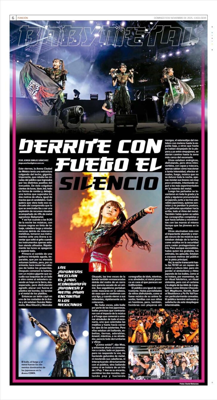 引用元:https://www.reddit.com/r/BABYMETAL/comments/1otzwi7/babymetal_concert_review_in_exc%C3%A9lsior_mexico/