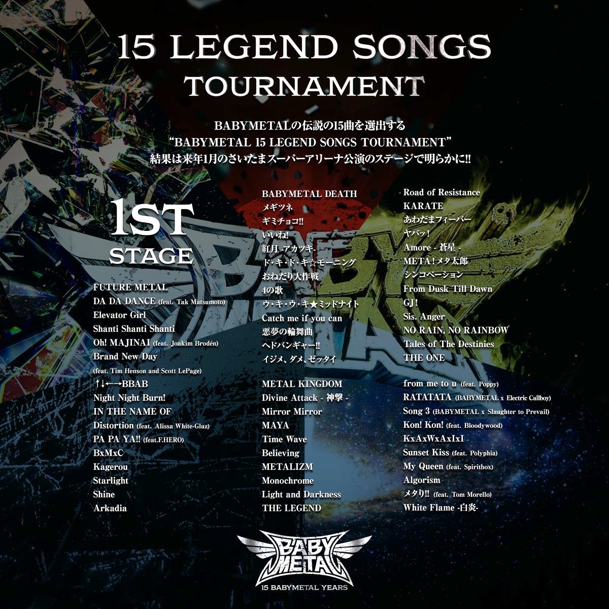 ファンによるBABYMETAL伝説の15曲を選出する “BABYMETAL 15 LEGEND SONGS TOURNAMENT” の開催決定DEATH!!