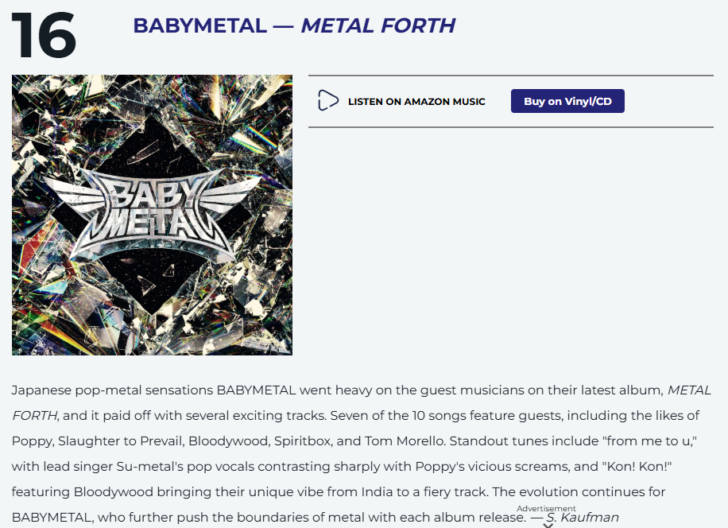 引用元:https://www.reddit.com/r/BABYMETAL/comments/1pdg6x8/the_30_best_metal_hard_rock_albums_of_2025/