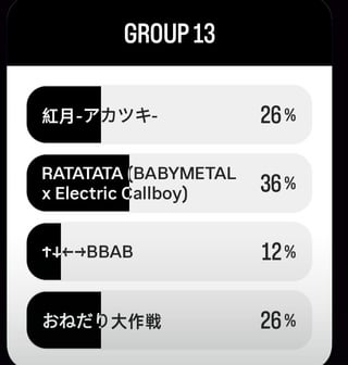 うん…BBABが確実に負けるのは気にしない。それでも投票したよ。私は約束を守る男だから。もしBBABがこのラウンドにいなかったら、暁に投票したと思う。私がBABYMETALのファンになったのはラタタタのおかげでもあるけど。
