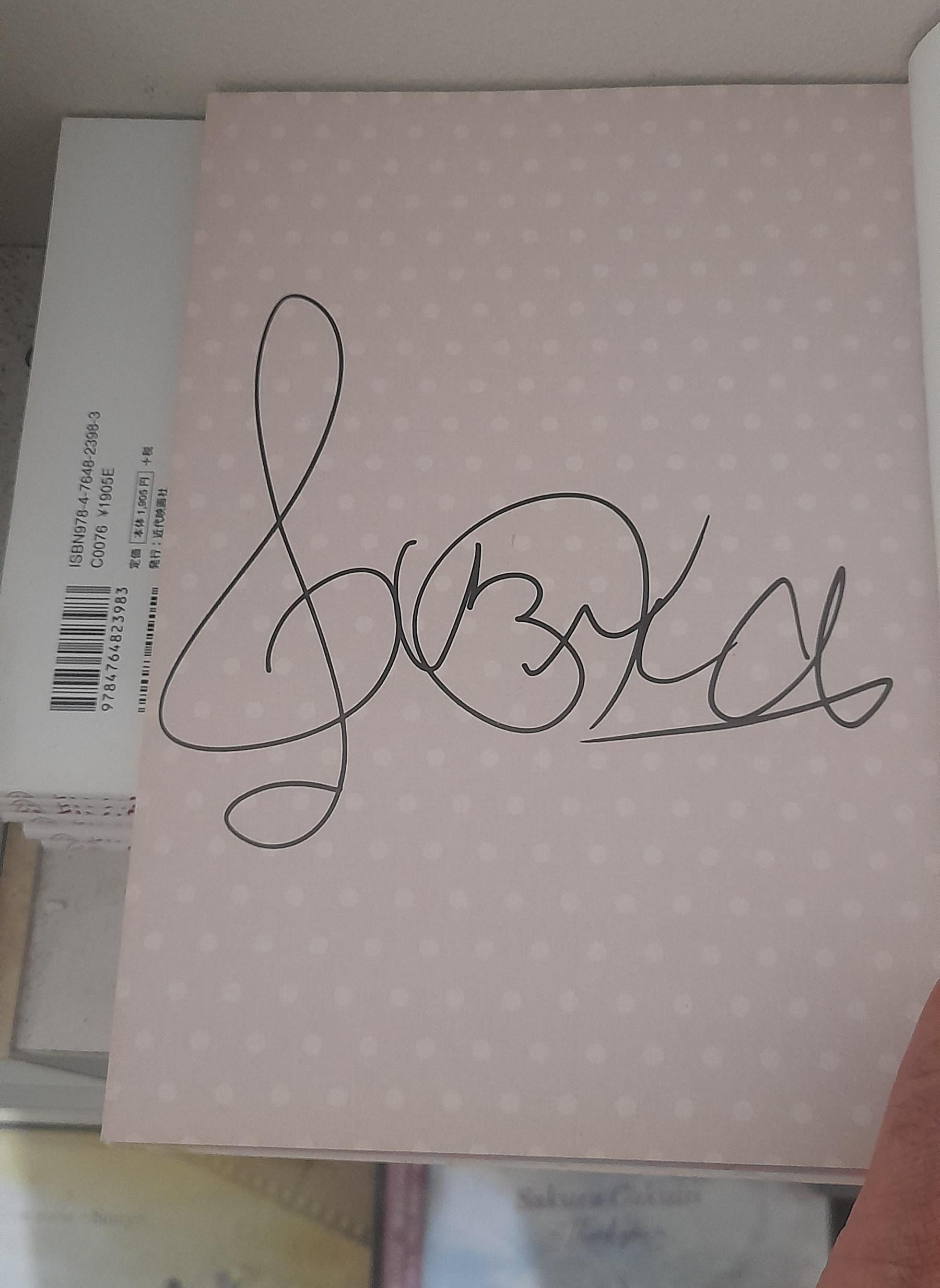 自筆をよく見ると、多くの興味深いディテールに気づくでしょう。冒頭のト音記号は、彼女の名前の頭文字を象徴するだけでなく、彼女の献身と、すぅの人生における音楽の深い重要性を象徴しています。美しい線は、精密さ、率直さ、そして自信を伝えています。その大きさとほぼ直線的な線は、高度な組織力と統制力を示しています。その筆致は、彼女の創造性と豊かな想像力を物語っています。🙂