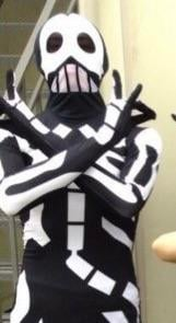 私の推測では、コバはコスチュームショップに行ってスケルトンのワンジーを見つけて買って、それがボーンズになったんだと思う。それからオリジナルの「バンド」用にもっと買ったんだ。