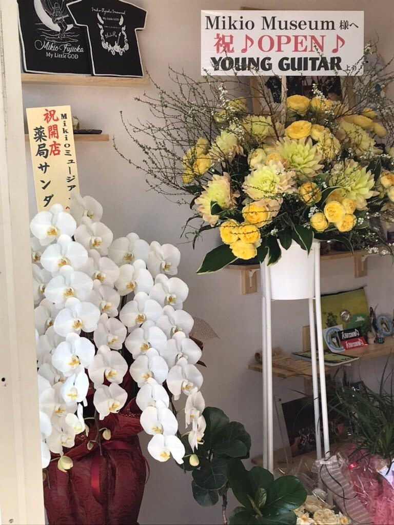 インターネットから、入り口、お祝いの花、展示物、フィンガーフードの種類、グッズ(ミキオはアニメの9人目のメンバー)、2階のステージ/ダイニングエリア、ファンとの写真撮影などの写真を何枚か集めました。