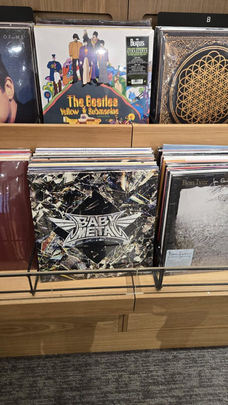 最近、地元の HMV (数か月前に再オープン) に行ったのですが、BABYMETAL のレコードと CD が置いてあるのを見て驚きました。主に METAL FORTH ですが、METAL GALAXY の CD もいくつか置いてありました…!