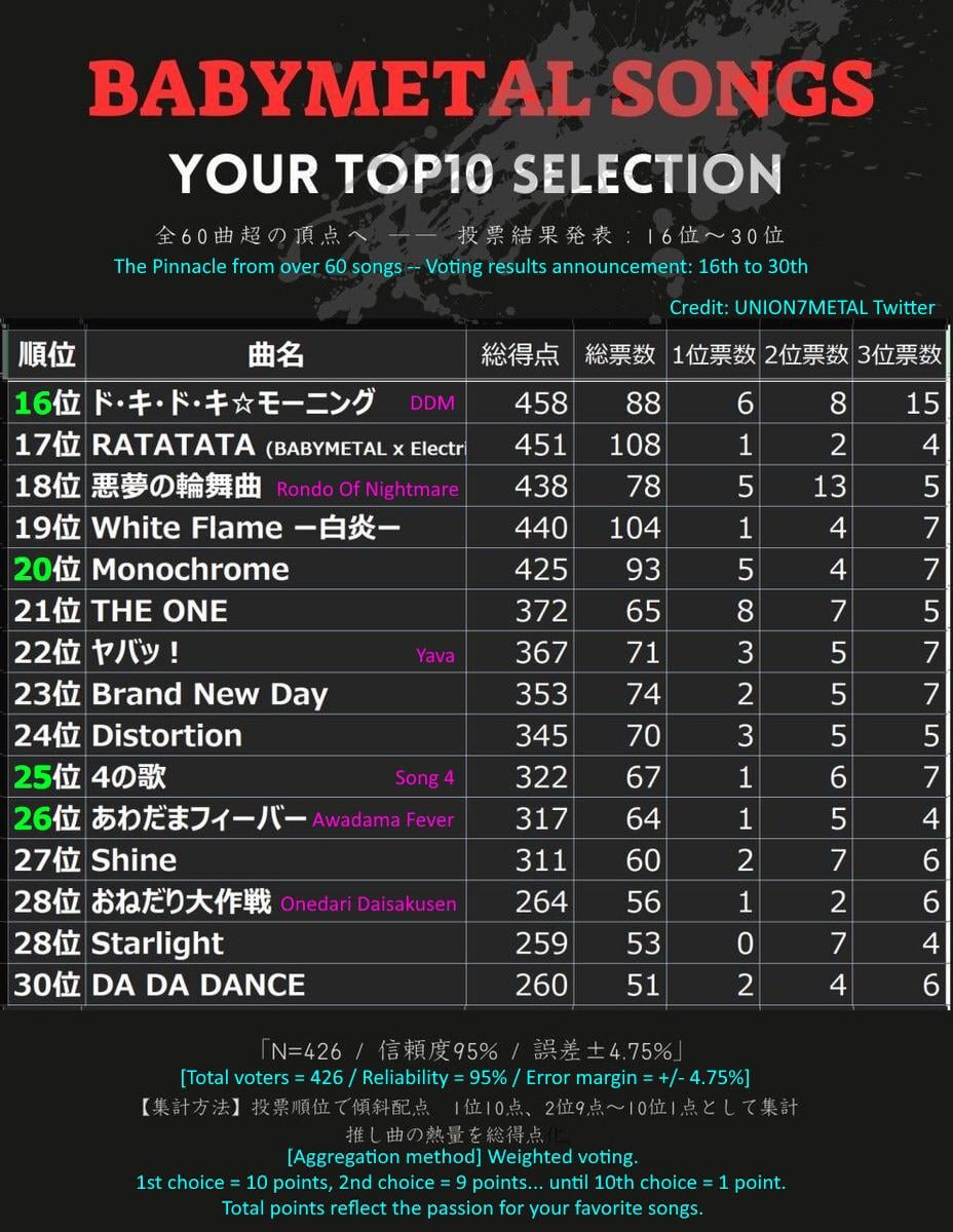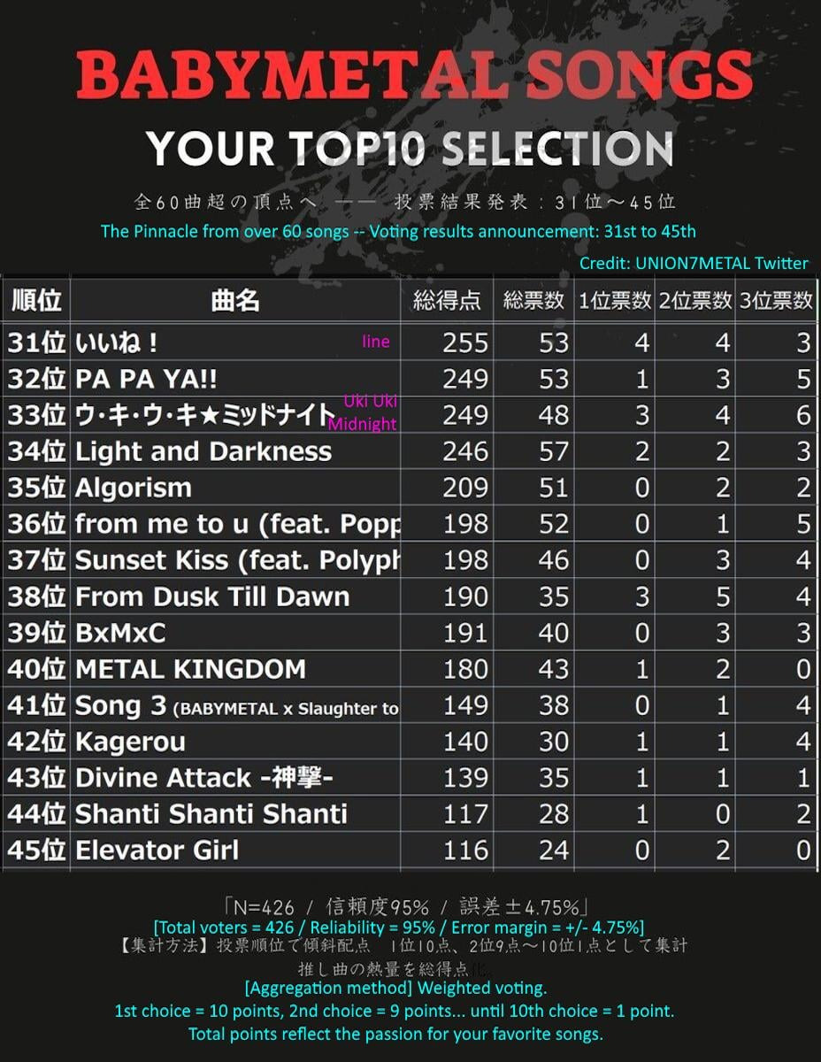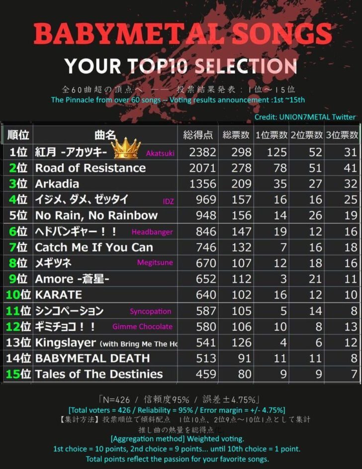 引用元:https://www.reddit.com/r/BABYMETAL/comments/1qyhpw5/alternative_15_legend_songs_fanvoted_on_jtwitter/