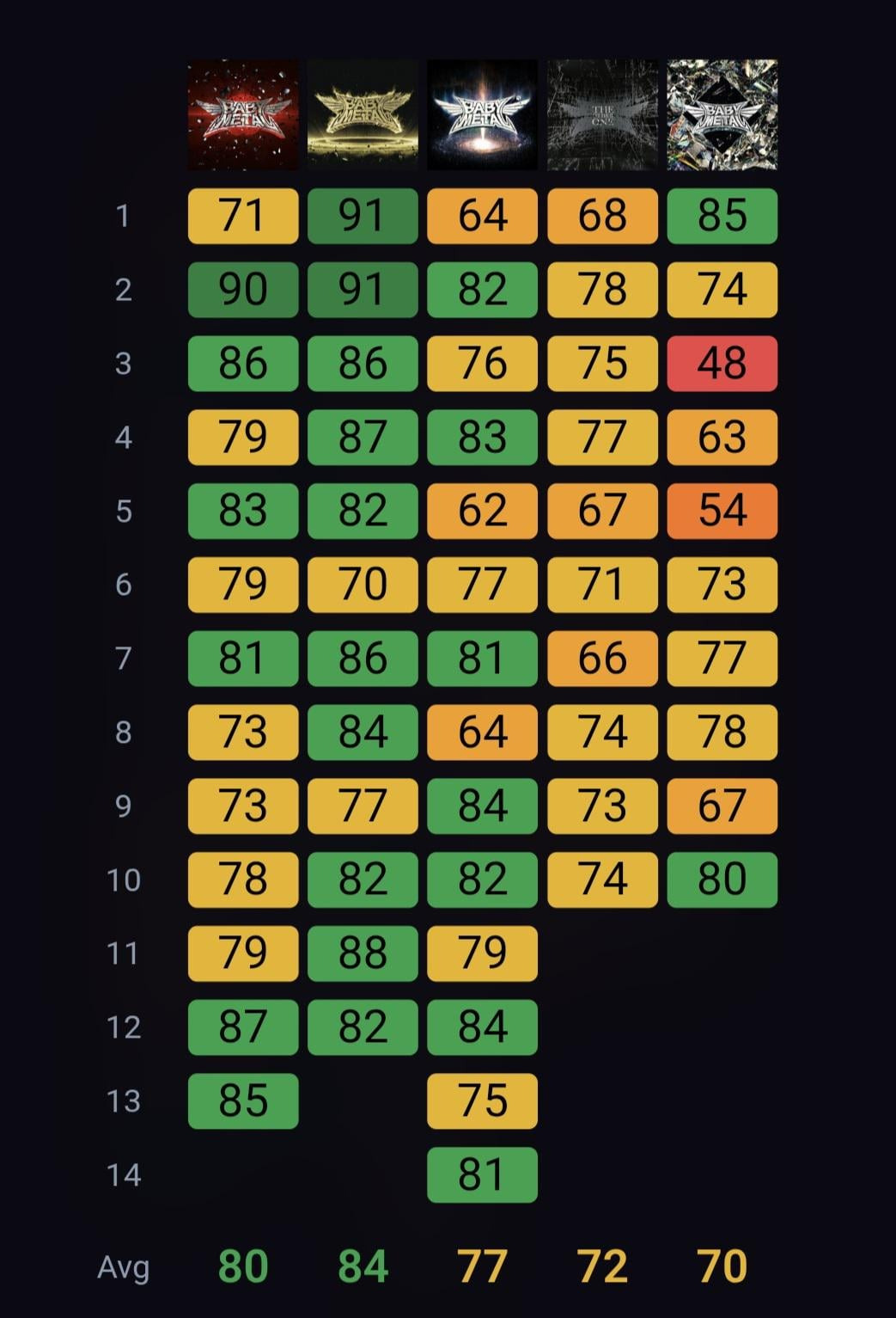 引用元:https://www.reddit.com/r/BABYMETAL/comments/1rftxw0/how_fans_rate_every_babymetal_song/