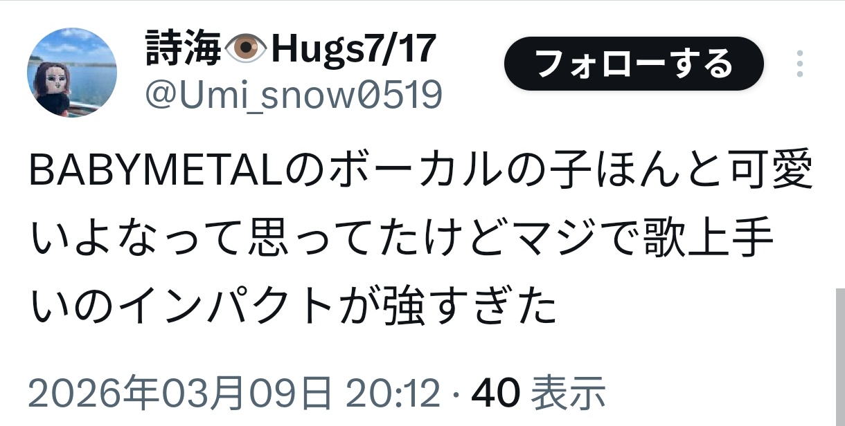 — Babymetal Tube 🍰🎂🍫 (@babymetaltube) March 9, 2026