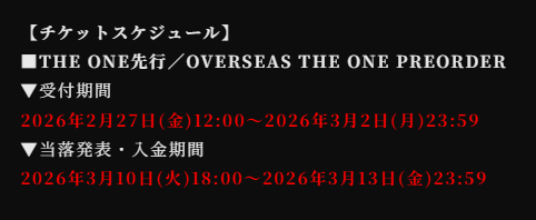 本日12:00よりTHE ONE先行・THE ONE OVERSEAS TICKET PREORDER (LOTTERY) 受付スタート!!