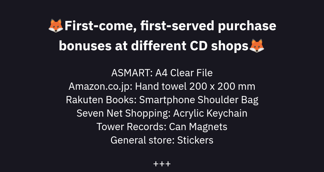 ウェブサイトには、この商品はショップ特典の対象外と書いてありますが、他のバージョンは対象です。でも、他にも特典があるみたいですね。ただ、今のところデザインの写真は見ていません。