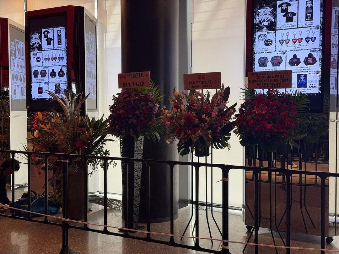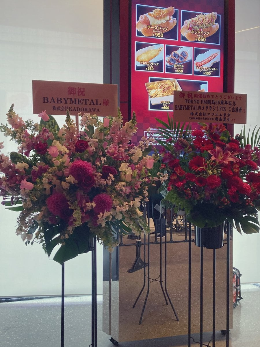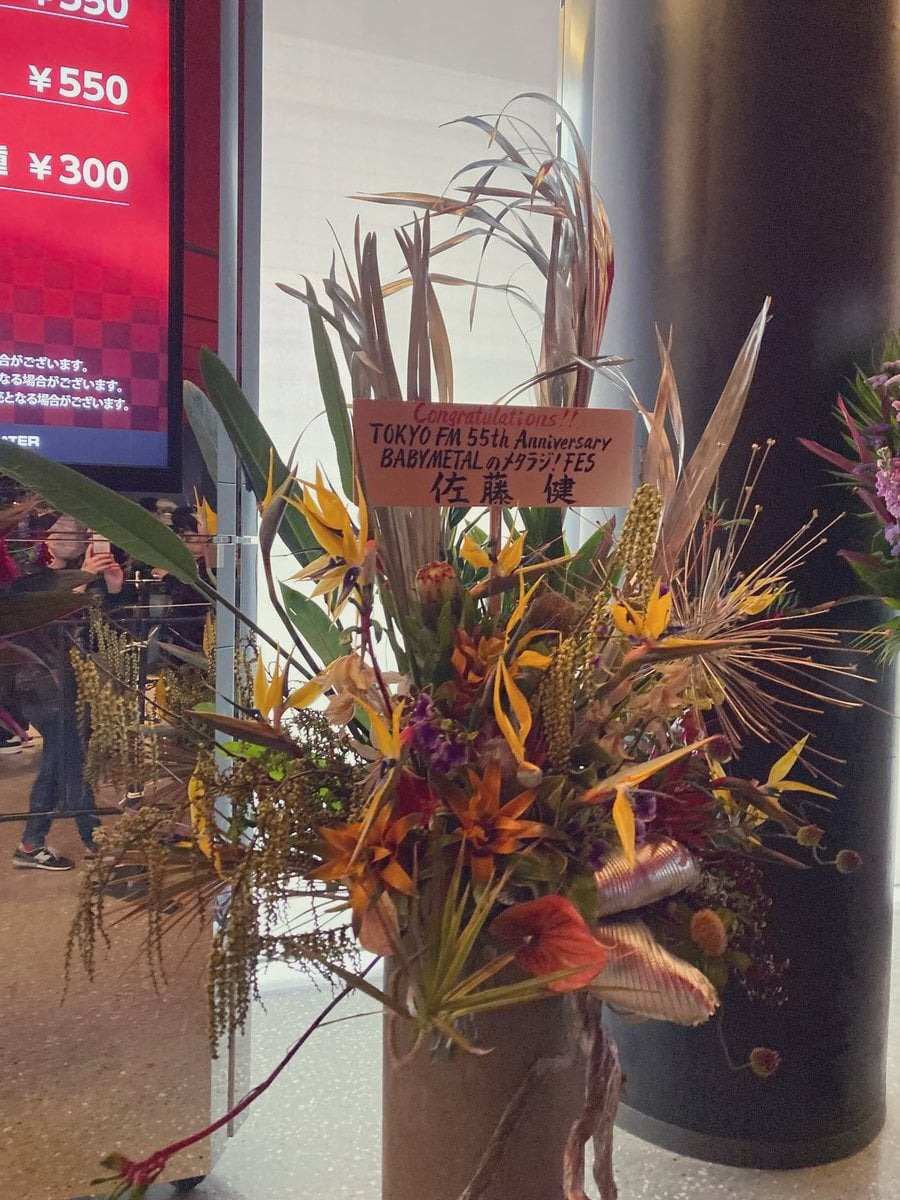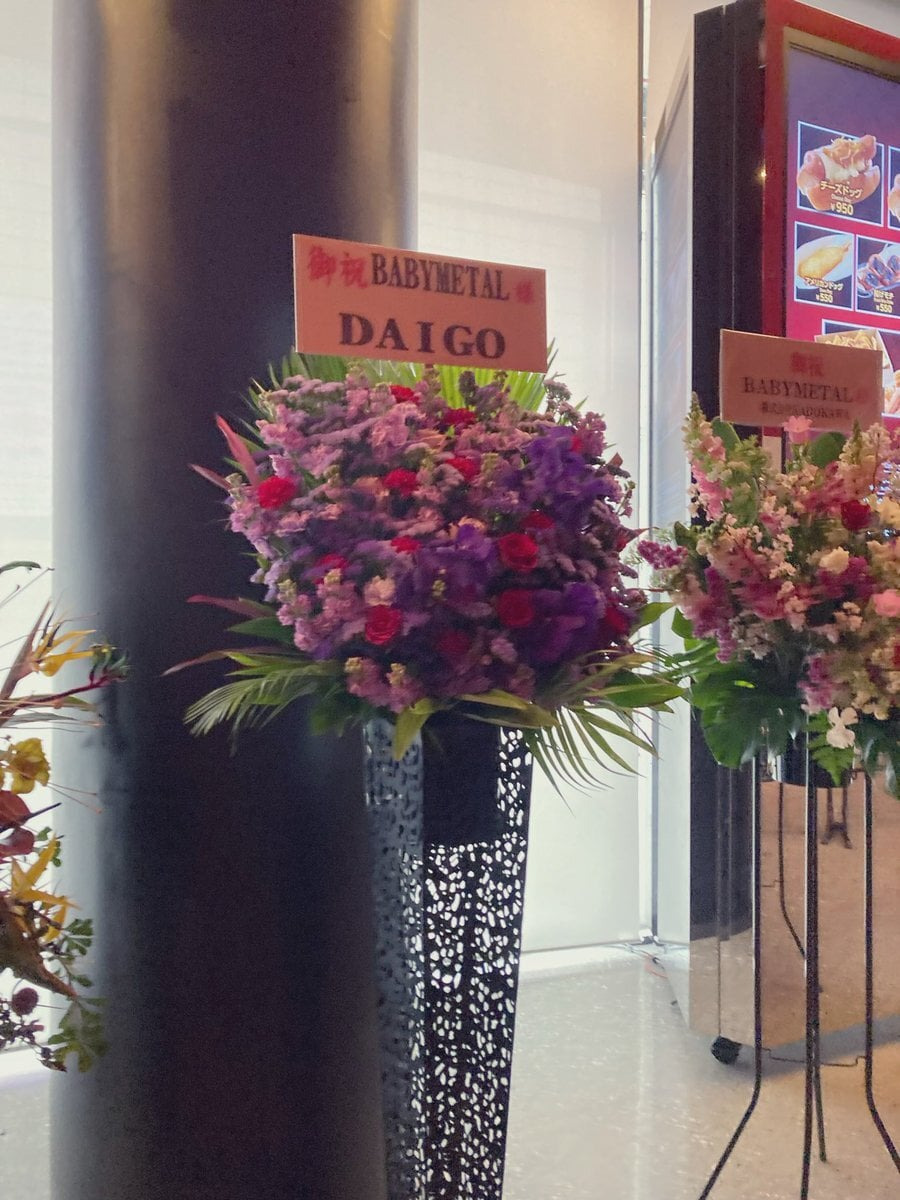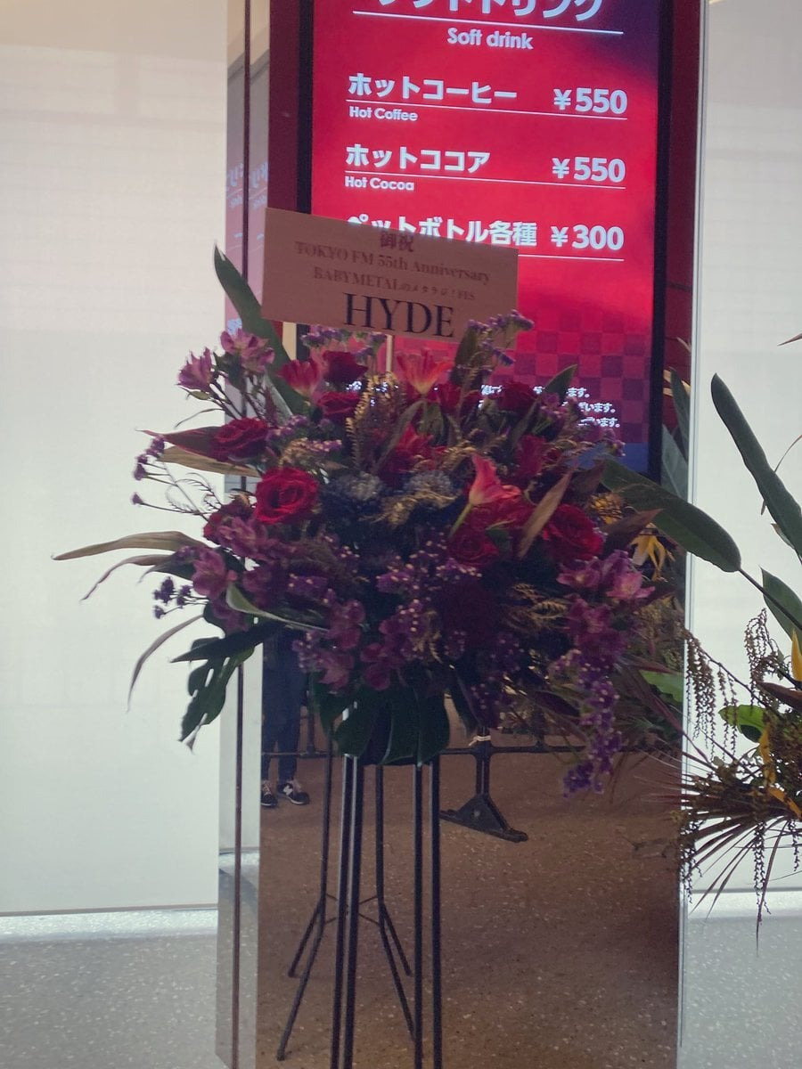 花束は、メタトモのHYDE、佐藤健、DAIGO、そして本書の公式出版社であるKADOKAWAとTokyoFM社長(唐島夏生)から贈られたものです。