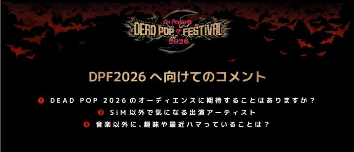 出演者達に聞いちゃいました!https://t.co/1RM1EW4BD1#DPF26 pic.twitter.com/b3sOlM1oYZ— DEAD POP FESTiVAL (@DEADPOP_FEST) March 30, 2026