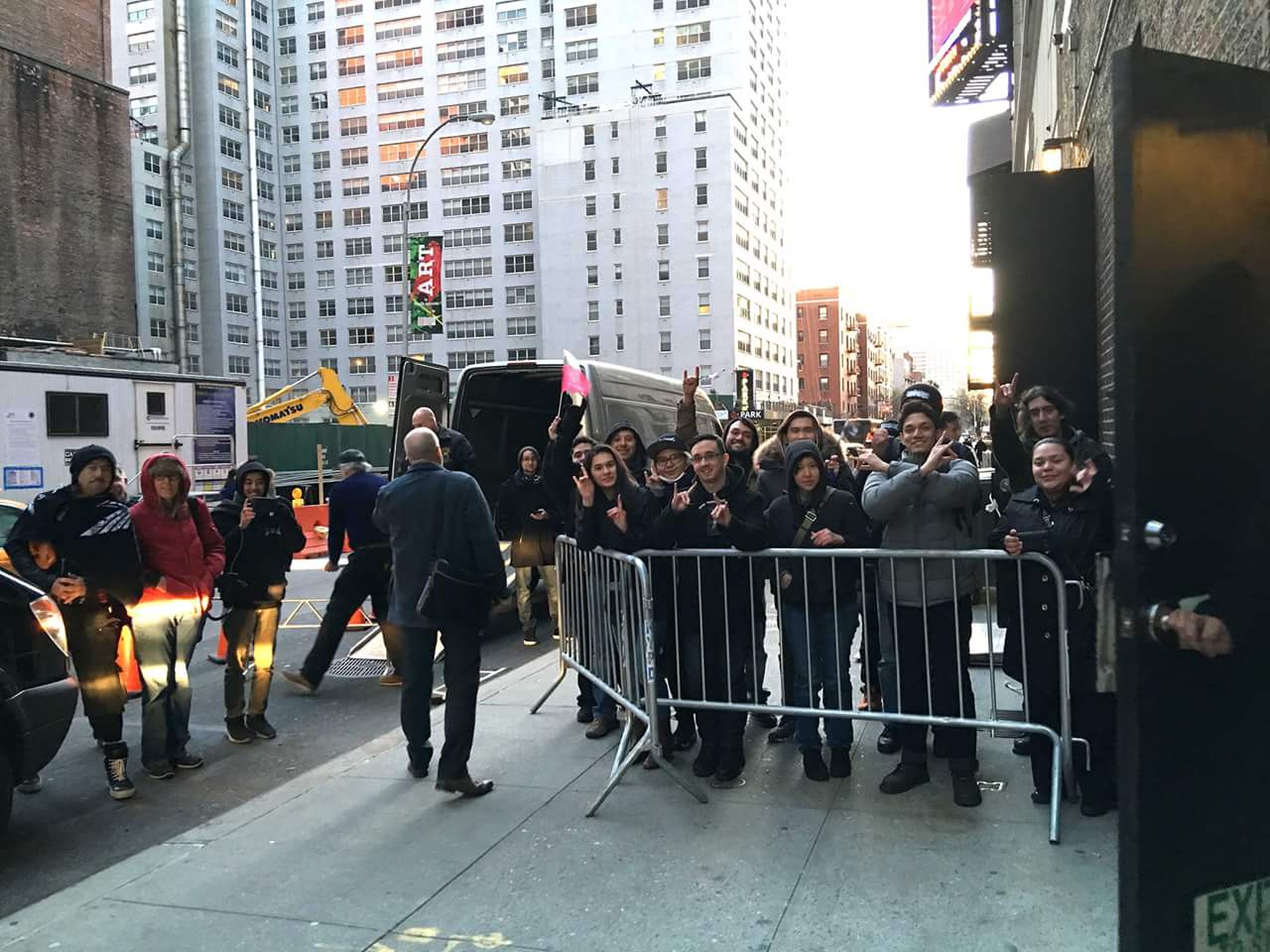 多くの調査と質問の結果、トークショーの制作に携わっていたテレビ業界の関係者であるファンと、別途プレスリリースを見た別のファンのおかげで、ショーの開催日を推測することができました。どちらの情報源も100%確証は得られませんでしたが、数人が思い切って4月5日のチケットを入手する計画を立てました。数人のファンはニューヨークに行くために旅行の計画を立て、日本からのファンを含む数人のファンは、ウェンブリーからの帰りのフライトをニューヨークに変更してショーに立ち寄りました。